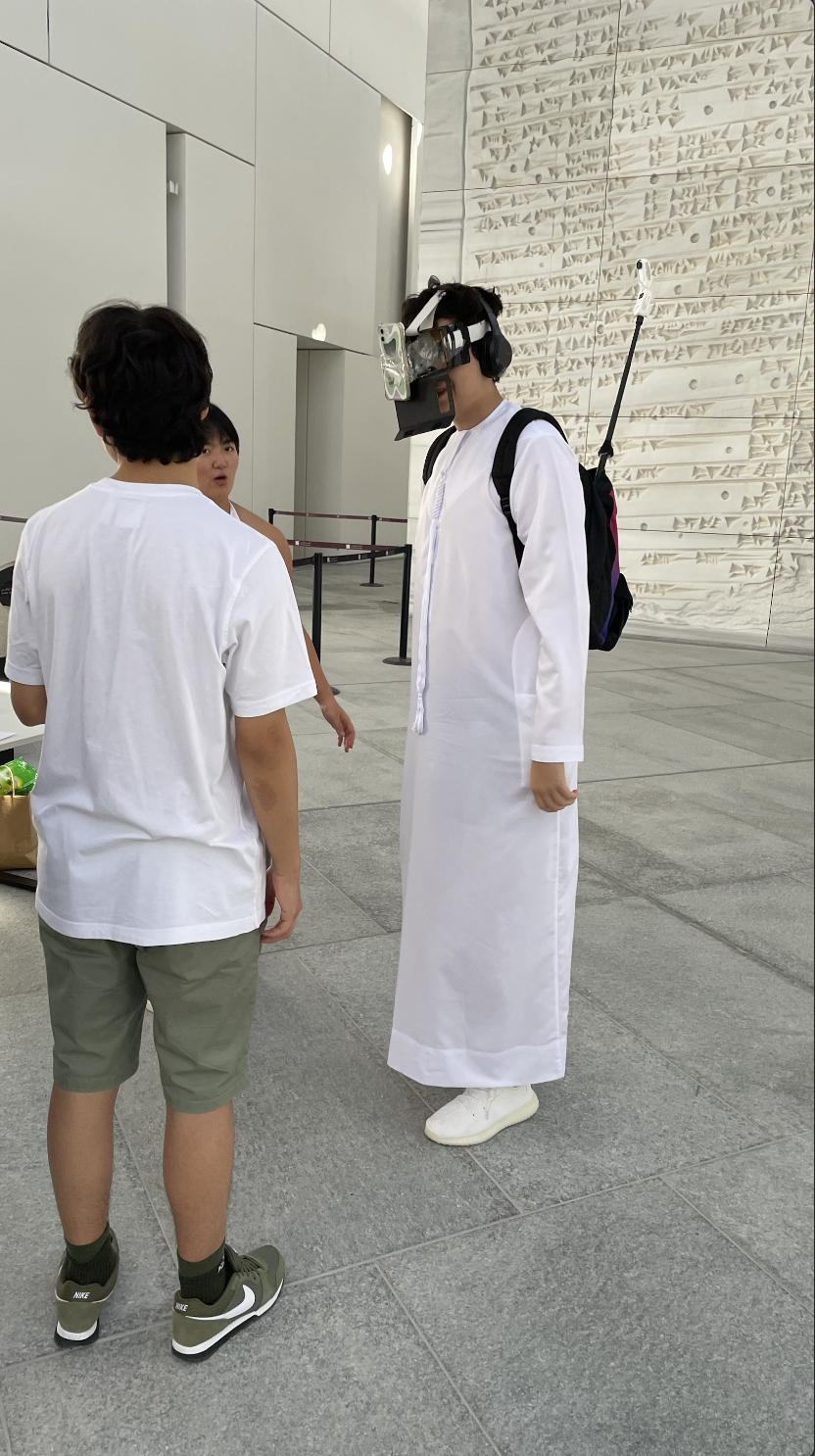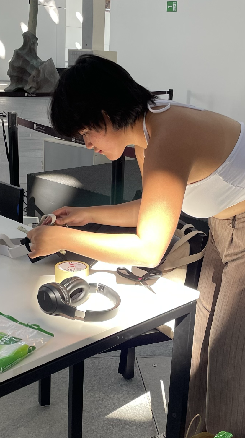 While partaking in Detachment & Attachment, users will wear the camera-infused backpack and goggles attached to a phone screen, pre-connected via bluetooth. The screen will livestream the camera’s POV, allowing the users to observe themselves and surroundings from the camera’s POV in real time. Meantime, they are guided by audio instructions to perform certain task related to the artwork inspired this piece.